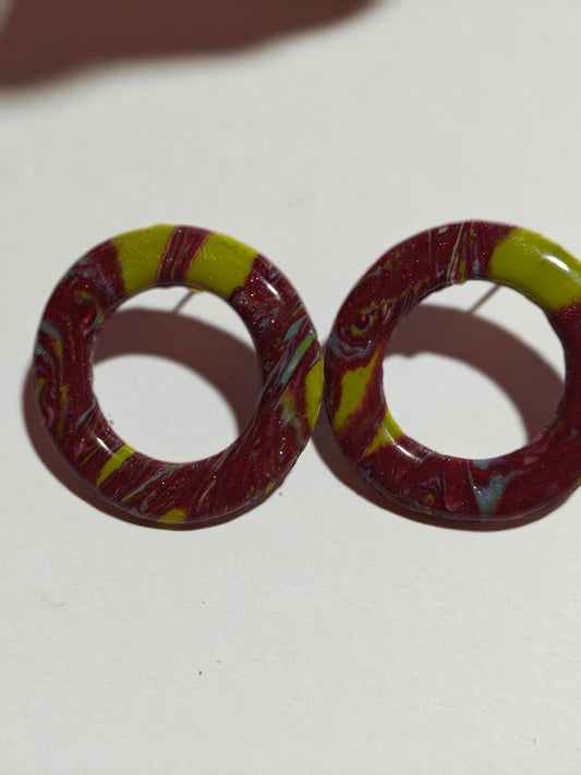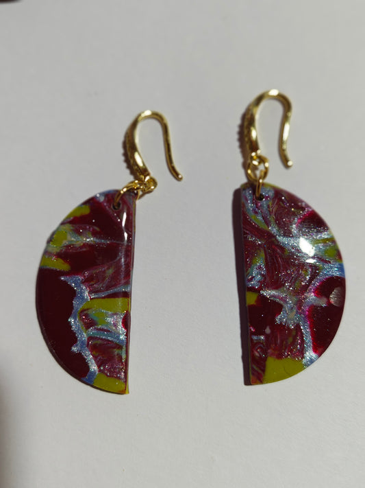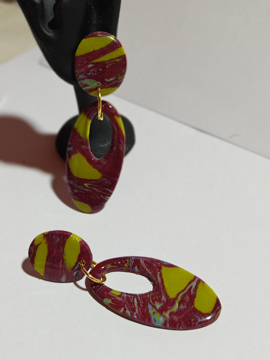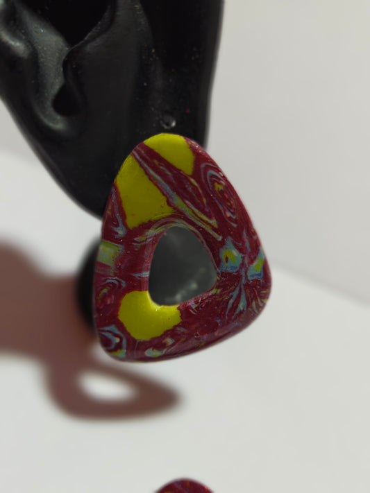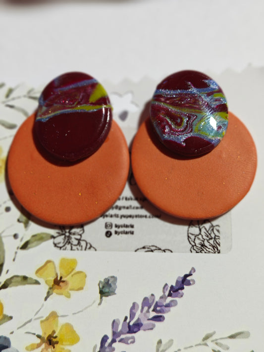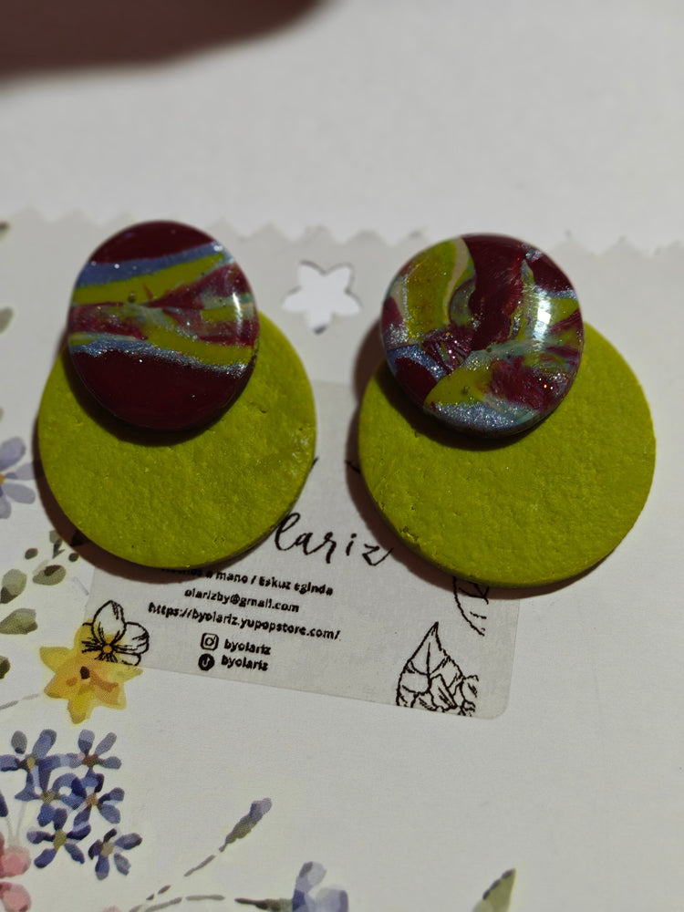 Pendientes artesanales de la colección Fusión, elaborados cuidadosamente a mano con arcilla polimérica de alta calidad.