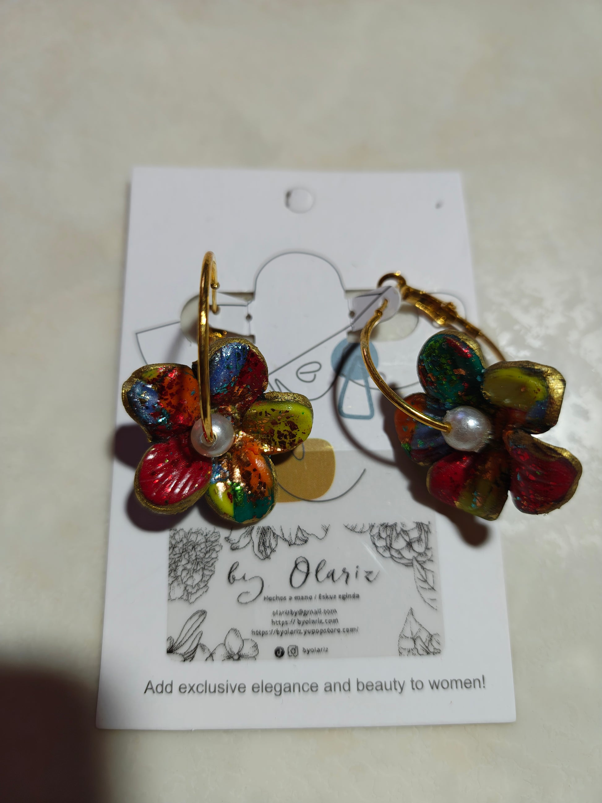 Los pendientes se sujetan con enganches hipoalergénicos, ideales para pieles sensibles. Son una opción perfecta para cualquier ocasión.